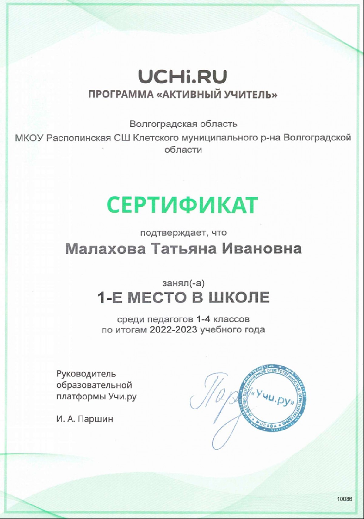 Грамоты и награды педагогического коллектива МКОУ "Распопинская СШ"
