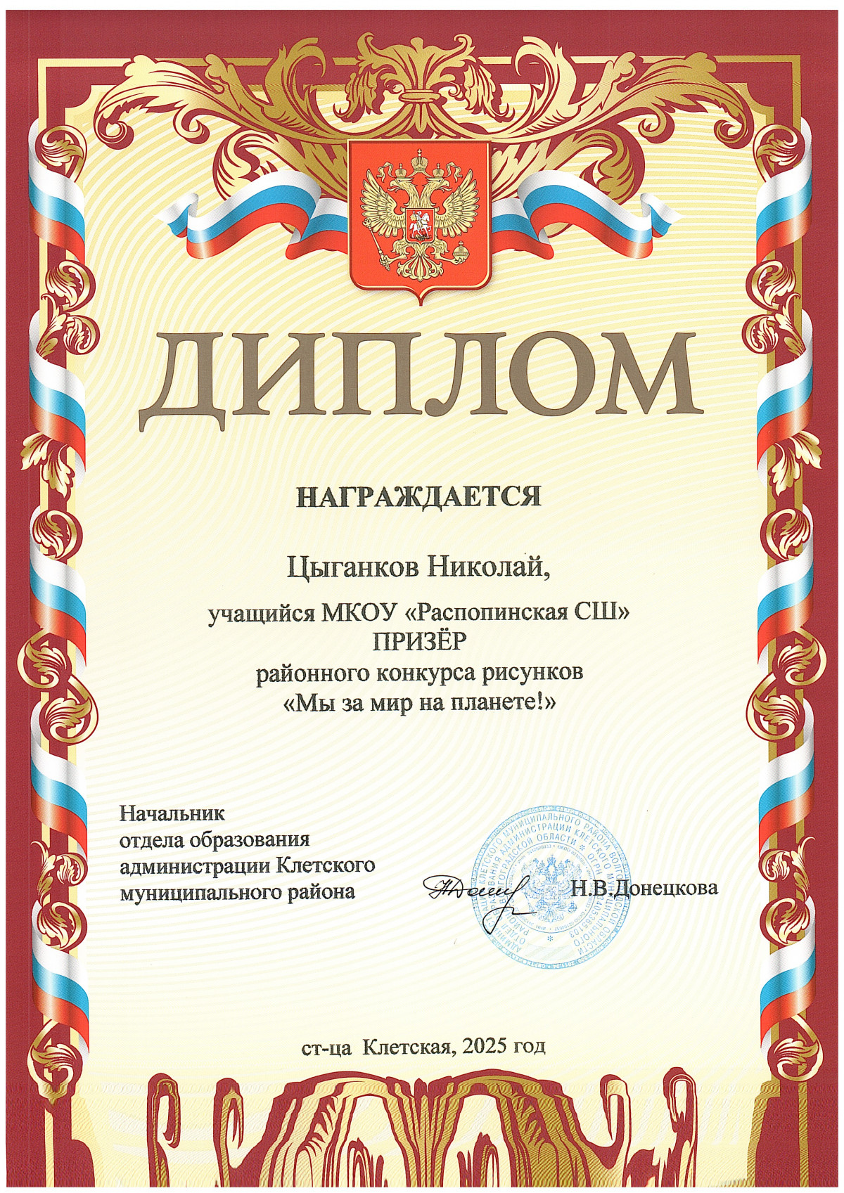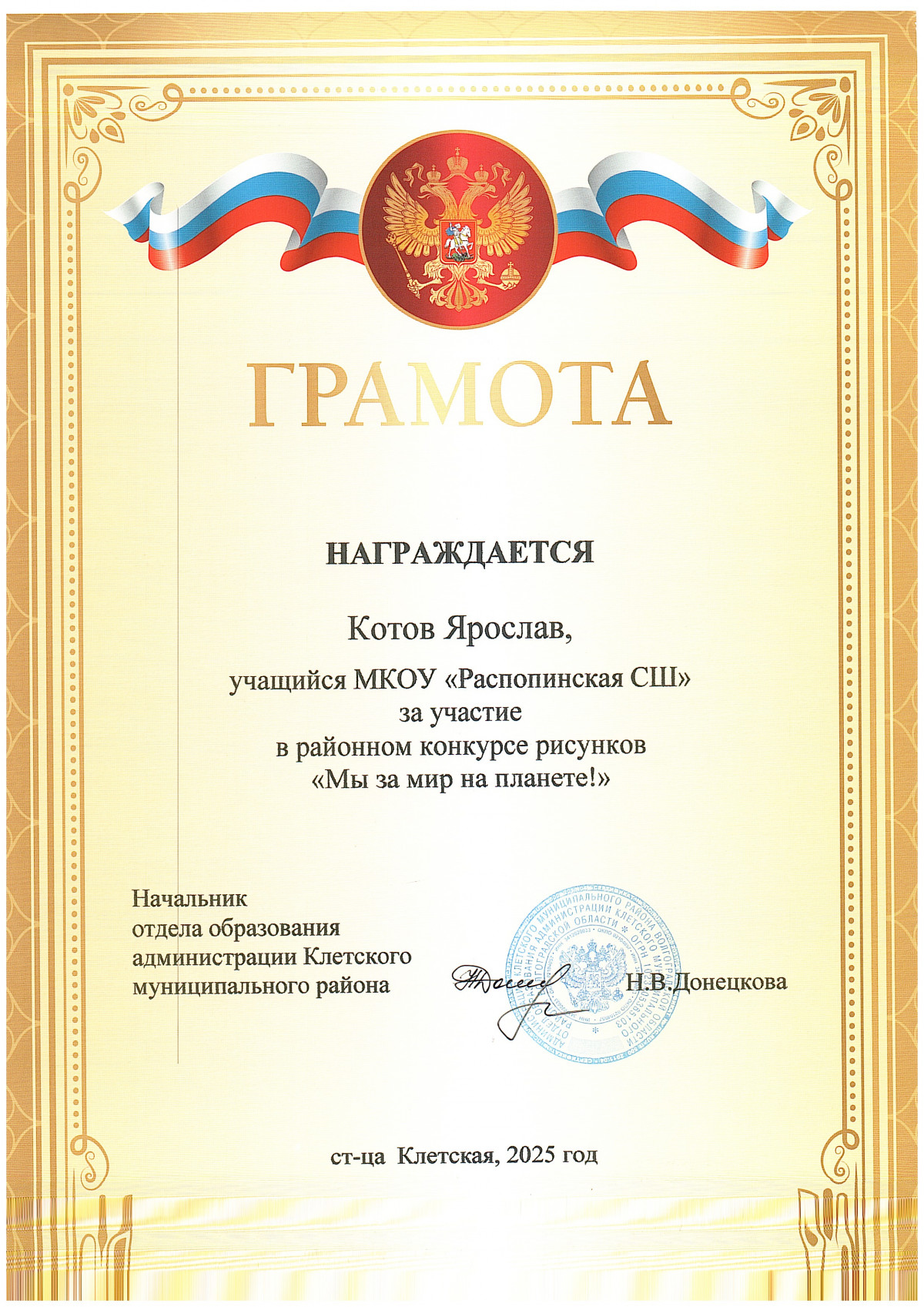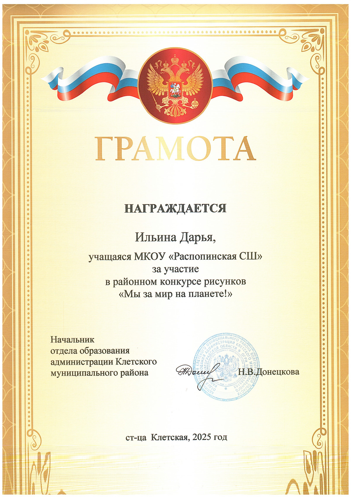 Грамоты обучающихся МКОУ "Распопинская СШ"