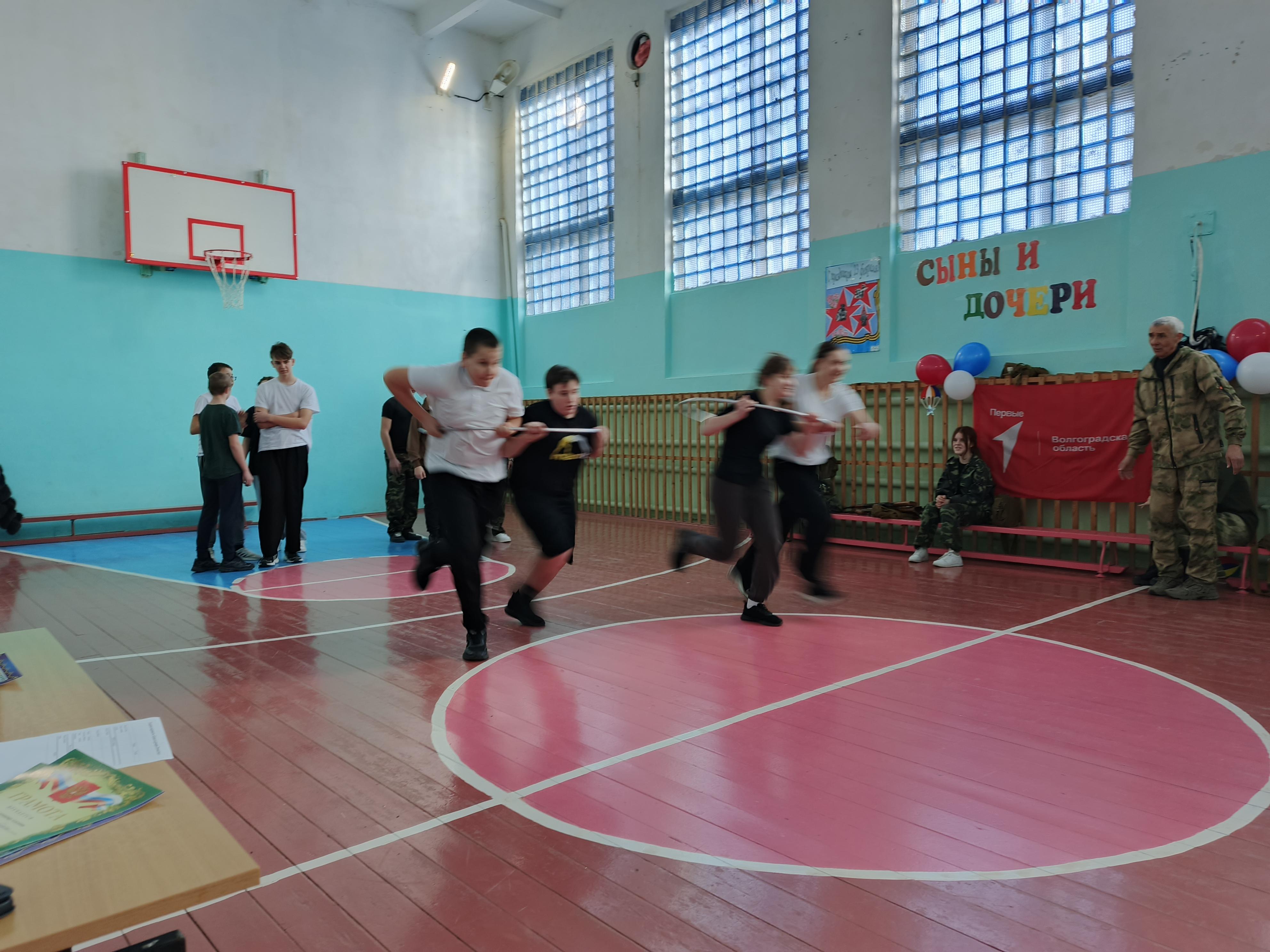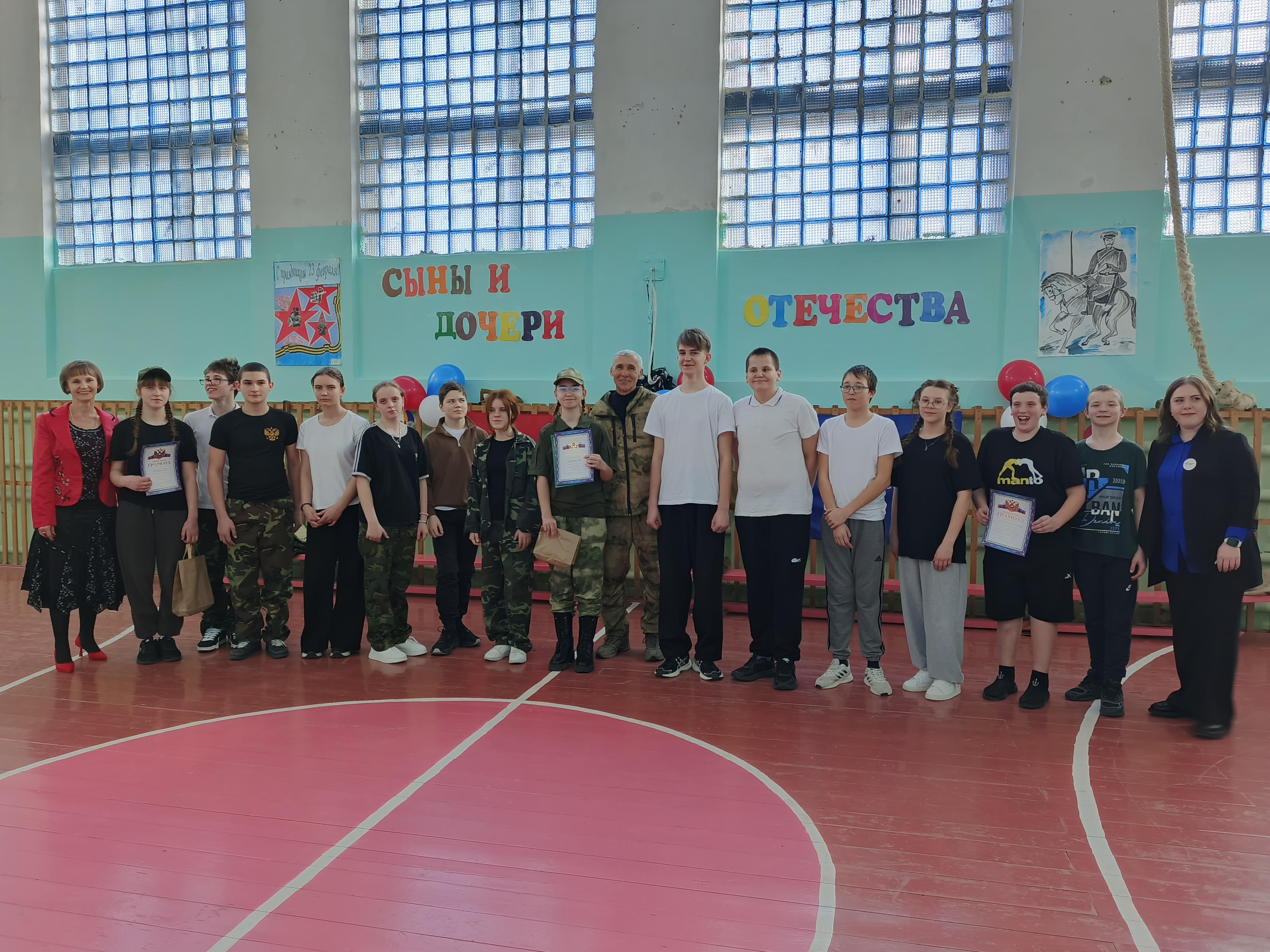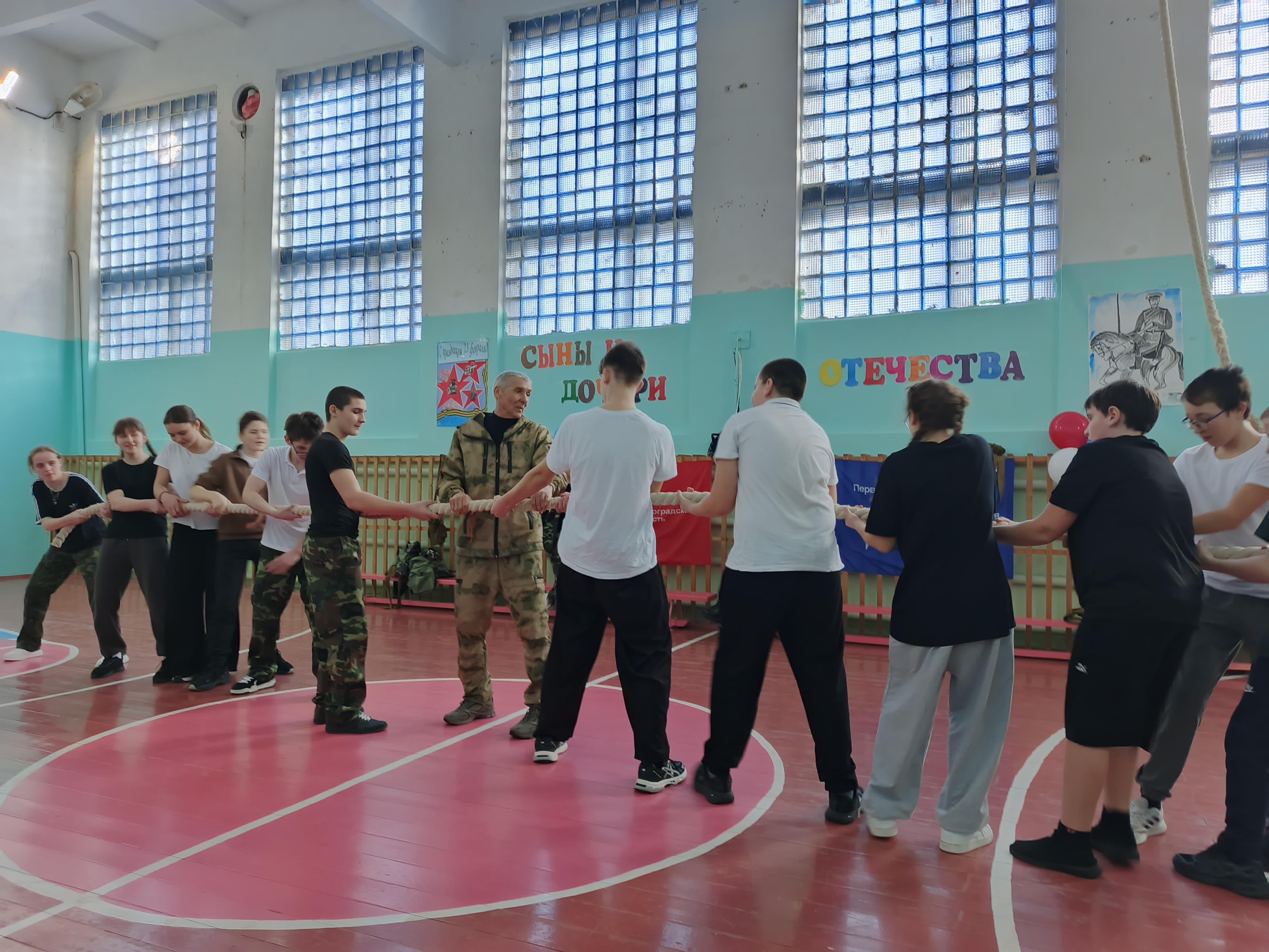 Команда ученического самоуправления «СОЮЗ» (лидер Скуднова Марина) и советник по воспитанию Бондарева Светлана Сергеевна, приняли в работу эту идею "Два в одном ", включающая в себя элементы военно-патриотической игры, под названием "Сыны и дочери Отечества" конкурсную программу между командами девочек и мальчиков